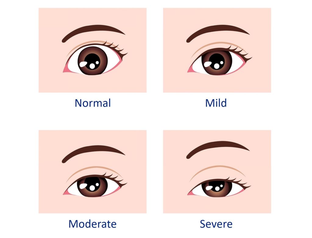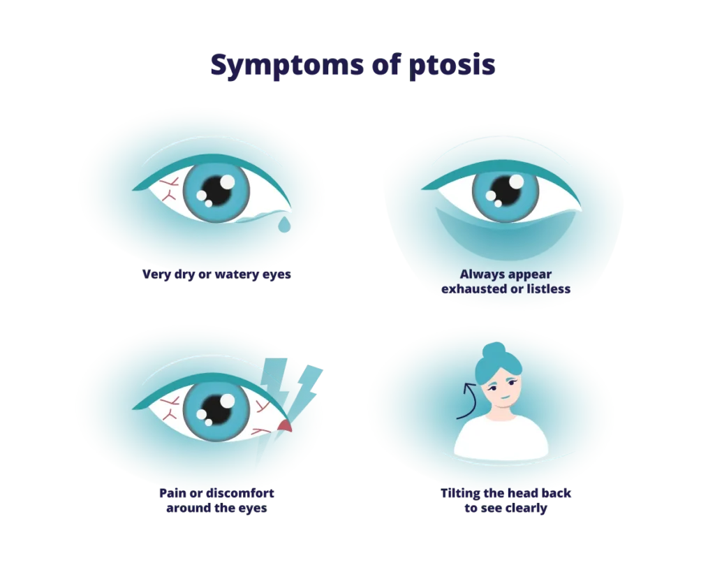 if you or your child has ptosis by your eyelid’s appearance. It may cover only your upper eye, or it may cover your entire pupil. Other ptosis symptoms may include: